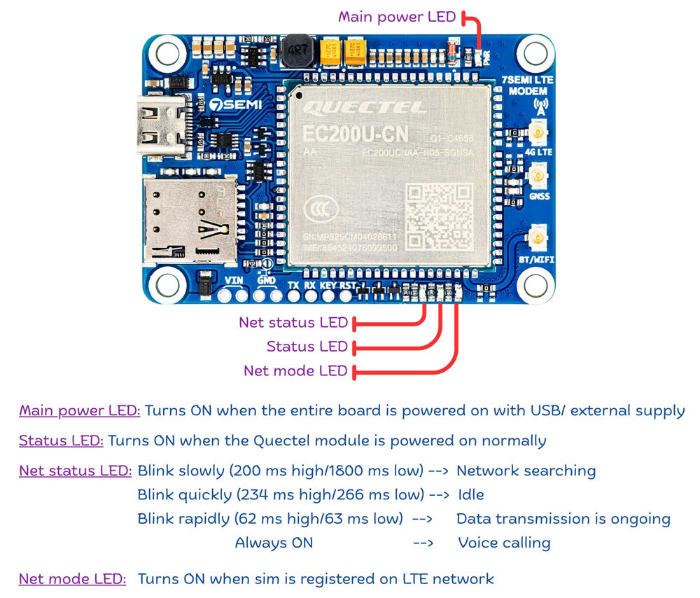 7Semi's LTE 4G GPS Mini Modem makes use of Quectel's EC200U-CN LTE Cat 1 wireless connection module. This module, which is a component of the QuecOpen series EC200U, supports GNSS (GPS, GLONASS, BeiDou, Galileo, QZSS) and allows data connections through LTE-FDD, LTE-TDD, and GSM/GPRS networks. The adaptable features of the QuecOpen module from the EC200U series are very advantageous for M2M applications.