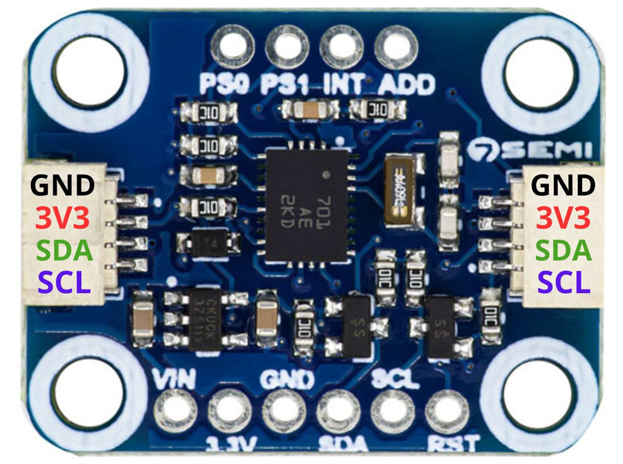 Whether you're engaged in robotics, drone development, or IoT projects, the 7SEMI BNO055 9-Axis Absolute Orientation Breakout stands as the ultimate solution for your orientation sensing requirements. Settle for nothing but the best - elevate your project today and savor the unparalleled performance of the BNO055!