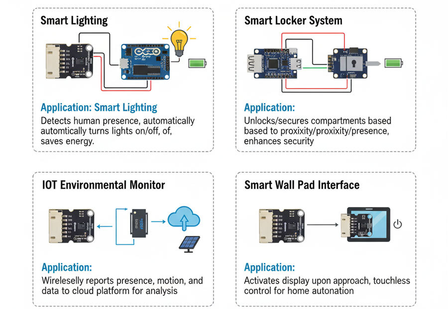 High-Sensitivity IR Detection: Detects human presence and motion up to 4 metres without external lenses.