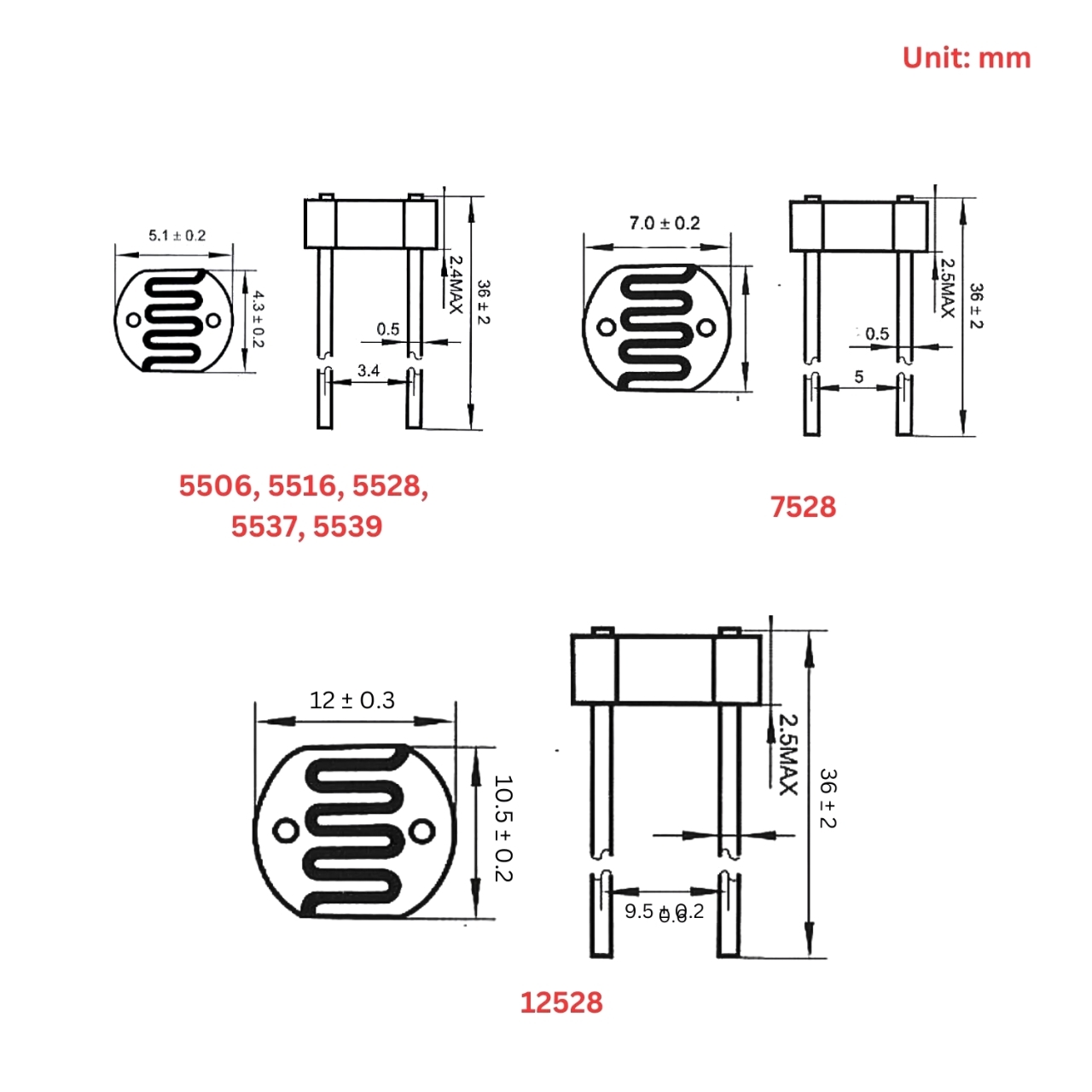 This Photoresistor / LDR Pack (5–12 mm) includes 35 pieces of Light Dependent Resistors across 7 different types, making it ideal for electronics experimentation, prototyping, and sensor-based projects.